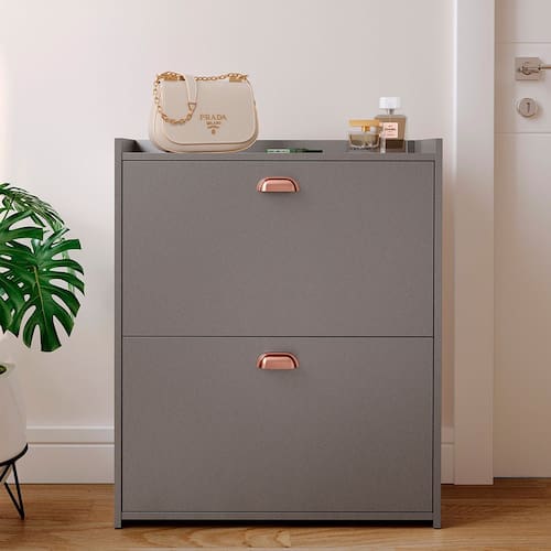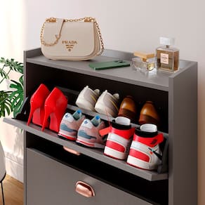 Sapateira Closet Vertical Organizadora 12 Pares Calçados Unissex Prateleira 2 Andares Gavetas Basculante Cinza Pérola - Lojas RPM
