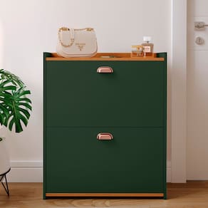 Sapateira Closet Vertical Organizadora 12 Pares Calçados Unissex Prateleira 2 Andares Gavetas Basculante Verde/Cedro - Lojas RPM