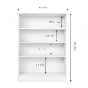 Altura: 110 cm Comprimento: 63 cm Profundidade: 36 cm MDP 15 e 12mm 3 prateleiras puxadores em ABS metalizado Dobradiça Metal Curva Pintura UV Brilho Pés de Plástico Possui sapatas Suporte de peso 19kg Garantia de 03 meses