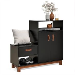 Com estrutura em MDP/MDF de 15mm, oferece 3 portas com dobradiças metálicas, 1 prateleira interna e pés em madeira maciça que garantem resistência e estilo.