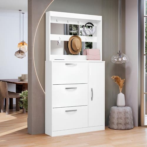 Esse conjunto de sapateira e espelho é perfeito para pessoas que precisam dos seus pertences perto, com elegância e praticidade!