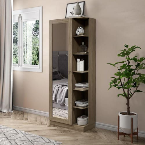 Sapateira Com Espelho 01 Porta 06 Prateleiras Íris Henn - Bege