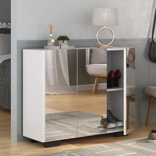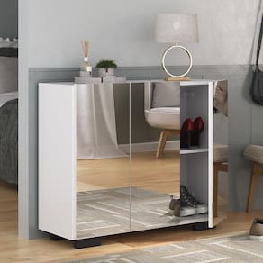 A Sapateira com Espelho 3 Portas Nina Multimóveis é produzida em MDP com acabamento acetinado (cerca de 20% de brilho), que garante maior durabilidade, facilidade na limpeza, além de um acabamento superior. Com 3 portas, possui um excelente espaço interno para acomodar seus sapatos e demais pertences (as prateleiras internas suportam 2 e 5 Kg e o tampo 7 Kg). Os pés quadrados, em polipropileno, facilitam na hora da limpeza. Os espelhos na porta deixam o móvel mais requintado, criando um ambiente moderno e charmoso. Os espelhos são de vidro (o que evita que a imagem fique distorcida) e lapidados, ou seja, passam por um processo para que as bordas não fiquem cortantes, o que garante maior segurança. Compacta, é uma excelente opção para otimizar seu ambiente, para que você possa aproveitá-lo da melhor maneira possível.