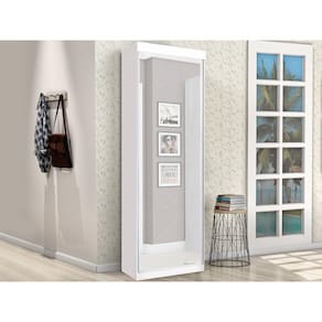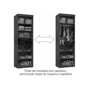 Possui uma porta espelhada e conta com 07 nichos internos, podendos dispor sapatos, roupas e objetos. Além de poder ser montada com cabideiro, para função dupla de roupeiro e sapateira.