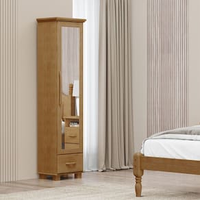 Características: Estrutura 100% em Madeira Maciça de Pinus Pintura Acetinada Verniz PU e UV Amplo espaço para armazenamento 01 Gaveta com Corrediças Telescópicas 01 Porta com Espelho e Dobradiças com Amortecimento Prateleiras Internas Puxadores e Pés em Madeira Maciça Peso Máximo Suportado pela Gaveta 05kg Distribuídos Peso Máximo Suportado pelas Prateleiras 10kg Distribuídos Isolamento de Peças com Manta de Polietileno Expandido (Isomanta)