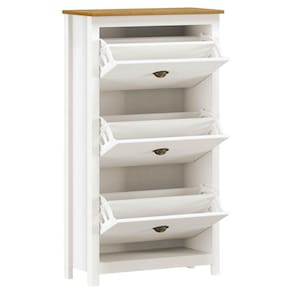 Chega de calçados espalhados pelo quarto ou até mesmo na porta de entrada da casa. Com a Sapateira de Madeira 3 Portas 70cm Estilo Americano Lázio F07 Branco/Carvalho, da Mpozenato, os dias de bagunça ficaram para trás. Vem conferir!