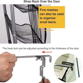 A sapateira é feita de aço carbono e uma malha de nylon de 6 camadas. Você pode instalá-lo acima da parte de trás da porta para organizar bem os sapatos ou outros itens. Ideal para pequenos espaços, como apartamentos ou dormitórios.