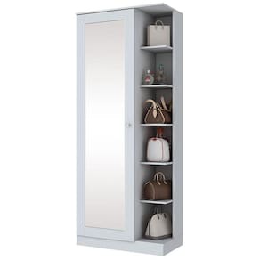 Possui como diferencias um grande e lindo espelho com moldura, 6 nichos laterais ideal para bolsas e sapatos além de possuir opção de montagem direita/esquerda.