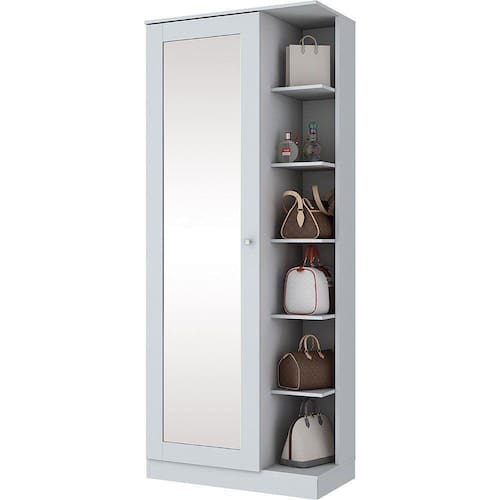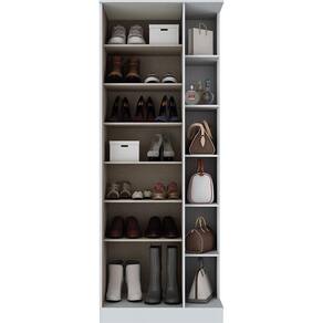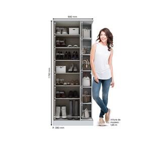 Feita em MDP e MDF a Sapateira Duetto da Henn possui uma porta com espelho, 7 prateleiras internas e 6 prateleiras externas. Conta com dobradiças de metal, puxador em alumínio e pintura UV. Tem design moderno que embeleza qualquer ambiente, além de oferecer amplo espaço para você organizar todos os seus calçados.