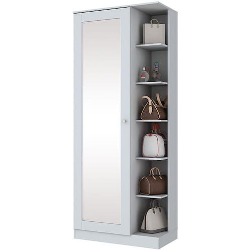 Sapateira Duetto 1 Porta com Espelho Henn A sapateira Duetto é perfeita para deixar tudo organizado, seguindo as tendências mais modernas de design do mercado!!! Possui como diferencias um grande e lindo espelho com moldura, 6 nichos laterais ideal para bolsas e sapatos além de possuir opção de montagem direita/esquerda.