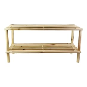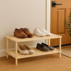 Com dois andares espaçosos, acomoda diversos pares de forma organizada, ajudando a manter o ambiente limpo e livre de bagunça. Sua estrutura robusta garante estabilidade, enquanto o acabamento em bambu claro traz um toque natural e sofisticado à decoração.