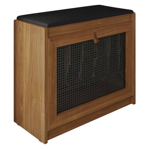Material principal: Madeira Maciça Acabamento: Verniz PU Detalhe decorativo: Porta em ratan Tipo de porta: Basculante Quantidade de prateleiras: 1 Assento: Estofado com espuma D14 Capacidade de carga: Até 120 kg Quantidade de pares de sapatos: 6 Requer montagem: Sim Tipo de instalação: Chão Ambientes indicados: Halls, Entradas, Quartos, Salas, Multiuso Peso do produto: 7 kg Dimensões (L x P x A): 60 cm x 26 cm x 51 cm Nature/Preto Marca: Carisma Fabricante: Carisma Móveis