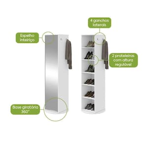 Sapateira Esthela Com Espelho E Base Giratória Móveis Lopas Branca Apresentamos a Sapateira Esthela com Espelho e Base Giratoria da Lopas. A Sapateira Esthela e uma peca elegante e funcional, ideal para organizar seus calcados com estilo. Com um design moderno e sofisticado, esta sapateira conta com um espelho integrado, proporcionando praticidade e adicionando um toque de beleza ao ambiente. Com materias de alta qualidade e acabamento em pintura UV foscas. O produto conta base giratoria de 360 para melhor aproveitamento do espaco funcionado com dupla funcao: Espelho e sapateira. Clique em COMPRAR e transforme seu Quarto!
