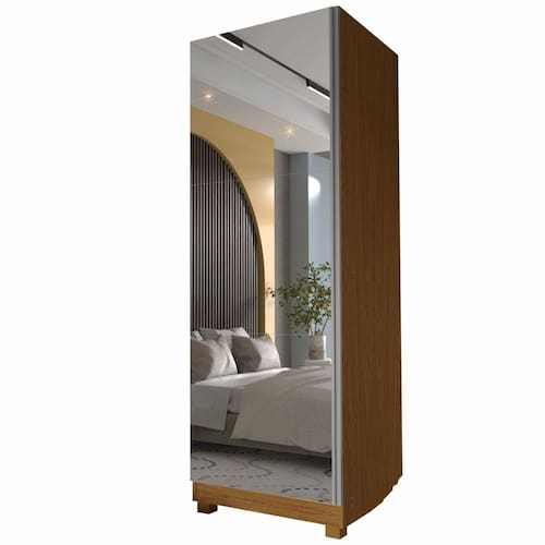 Seu design possui linhas retas e ainda conta com uma linda porta de espelho que confere maior beleza a peça, a ela conta com 63 cm de largura, sendo possível incluir ela no seu ambiente sem ocupar grandes espaços.