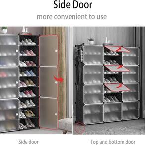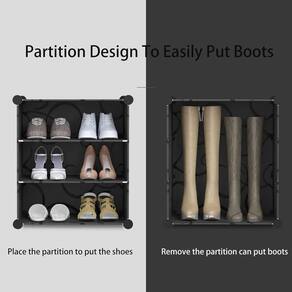 Sapateira Modular Gigante de 12 Portas – Armazena até 144 CalçadosA Sapateira Modular Gigante é uma solução inovadora para manter seus calçados, bolsas, brinquedos e outros itens organizados, otimizando o espaço de forma eficiente.Com um design moderno e funcional, é perfeita para ambientes pequenos, como corredores, armários, entradas e quartos.Principais Características:Capacidade Ampla: Armazena até 144 pares de sapatos, além de acomodar bolsas, brinquedos e outros acessórios, ajudando a manter tudo no devido lugar.Design Vertical Inteligente: A estrutura alta e estreita ocupa pouco espaço no chão, permitindo melhor aproveitamento de ambientes compactos.Painéis Protetores: Laterais, topo e fundo são revestidos com painel plástico PP, proporcionando proteção contra poeira e facilitando a limpeza.A porta transparente permite visualizar os itens sem necessidade de abrir o compartimento.Material Resistente e Durável: Fabricada com estrutura de metal e conectores de ABS reforçado, garantindo maior estabilidade e resistência.Modular e Personalizável: O sistema modular permite que a sapateira seja montada em diferentes formatos.Pode ser dividida em duas sapateiras menores de 5 níveis cada, adaptando-se ao espaço disponível e às suas necessidades.Fácil Montagem: Acompanha manual de instruções para montagem prática e rápida.Atenção: Evite sobrecarregar as prateleiras para manter a estrutura estável.O plástico é inflamável, portanto, evite exposição direta ao calor.Ficha Técnica:Cor: Preto e TransparenteMaterial: Plástico PP e Estrutura de FerroNúmero de Compartimentos: 12 compartimentos fechadosDimensões Totais: 160 cm (largura) x 135 cm (altura) x 30 cm (profundidade)Itens Inclusos: Peças modulares e manual de montagemCom um design elegante e funcional, essa sapateira é ideal para quem busca organização e praticidade sem comprometer o estilo do ambiente.