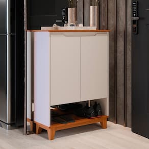 Internamente, oferece amplo espaço para armazenamento de calçados, acessórios ou itens de uso cotidiano, unindo praticidade à estética leve e funcional.