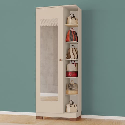 Transforme sua organização com a Sapateira Laila! Fabricada 100% em MDF, oferece alta durabilidade e design moderno para combinar com qualquer ambiente. Com excelente divisão interna e cinco prateleiras, ela garante praticidade e otimização de espaço. Além disso, acompanha dois espelhos, agregando ainda mais funcionalidade e estilo ao seu dia a dia. Não perca a chance de ter um item versátil e elegante em sua casa!