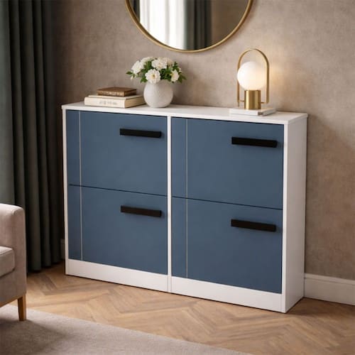 O(a) Sapateira Lisboa 4 Portas Azul/Branco - Politorno é produzido em MDP na escala de brilho Semi-Fosco, e possui um grau de dificuldade de montagem: Médio.