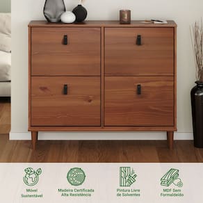 Além de sua versatilidade de uso, a Sapateira 04 Basculantes em Madeira Mikka é uma escolha consciente para o meio ambiente, sendo feita de madeira maciça reflorestada, mais resistente que o MDF. Sua pintura é livre de solventes e formaldeído, cuidando da saúde da sua família.