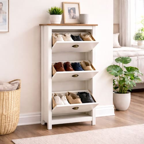 Organização com elegância e durabilidade incomparáveis. A Sapateira 3 Gavetas é a união perfeita entre funcionalidade e sofisticação. Fabricada em madeira maciça, ela garante resistência superior e acabamento de alto padrão — ideal para quem busca beleza aliada à praticidade no dia a dia. Com capacidade para até 18 pares de calçados, suas gavetas basculantes otimizam o espaço e mantêm tudo organizado com charme e discrição. Disponível nas cores Freijó, que traz calor e requinte, e Branco/Freijó, que destaca com leveza os detalhes e a nobreza da madeira maciça.<Br>