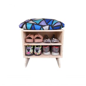 Lindo, robusto e charmoso, este puff sapateira é super resistente. Feito com madeira maciça de reflorestamento, é ecologicamente correto.Fica perfeito em qualquer ambiente, além de super útil!Muito versátil, este puff pode ser como porta livros, cds e dvs, revisteiro, sapateira, enfim..é só usar sua criatividade, escolher um espaço bem charmoso e terá uma peça bem funcional e bonita na sua decoração!É entregue montado, só é necessário parafusar o pé.Suporta em torno de 95kg.Acompanha almofada abstrata azul.A medida da altura é feita com o pé.Altura: 0.40 cmLargura: 0.30 cmComprimento: 0.40 cmPeso: 8000 g