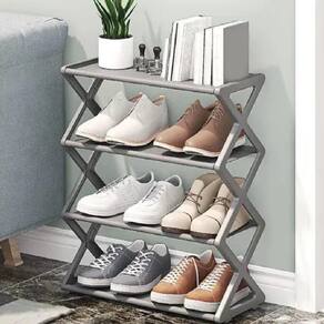 Sapateira Modular 4 Prateleiras Ajustavel Casa Closet Sala Estante 8 Pares Calcados Luxo Cinza