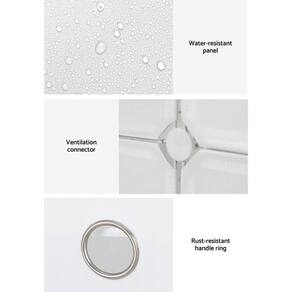 Organização Versátil: Além de sapatos, você pode utilizar os cubos para armazenar uma variedade de itens, e duas fileiras de ganchos laterais permitem pendurar bolsas, chapéus e outros acessórios. Durabilidade e Resistência: Construída com uma estrutura de metal resistente, painéis de plástico PP de alta qualidade e conectores ABS, esta sapateira garante durabilidade e estabilidade para anos de uso. Montagem Simples: O design modular permite uma montagem fácil e rápida, e o kit inclui todas as ferramentas de instalação necessárias, conectores e instruções claras para uma montagem sem complicações. Fácil de Limpar: Feita de plástico à prova d'água de alta qualidade, esta sapateira é fácil de limpar com um pano úmido, removendo sujeira ou manchas facilmente.