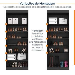 A Sapateira Modular de 2 portas Hera CabeCasa foi desenvolvida para trazer a experiência de ter seu móvel customizado de acordo com a necessidade do seu espaço. O móvel conta com 2 kits com 3 prateleiras cada e que podem ser ajustados conforme a pré marcação na caixaria, evitando assim problemas para nivelamento dos mesmos. Acabamento da Porta: Pintura Acabamento da Prateleira: Pintura Acabamento dos Pés: Pintura Altura dos Pés: 8 Ambiente Principal: Quarto Complexidade da Montagem: Alta: deve ser montado por um montador especializado Composição: Maior parte MDP Cor: Preto Cor do Produto: Preto Cor Interna: Preto Escala de Brilho: Semi-Fosco Espessura do Material da Estrutura: 15 Gaveta com Chave: Não Informações Complementares: Puxador Metálico Preto Industrial, portas em chapa de 18mm com dobradiças com amortecimento e fundos em 6mm. Itens Inclusos: 1 Sapateira, 1 Manual de montagem e 1 Kit ferragens Linha ou Coleção: Hera Manual de Montagem e Instalação: https://cdn2.madeiramadeira.com.br/atributo/herval-edez-rs/1420961-grh12aa01-manualsapateira2p.pdf Material da Porta: MDP Material da Prateleira: MDP Material do Puxador da Porta: Metal Material dos Pés: MDP Material Principal: MDP Necessita Montagem: Sim O Módulo Pode ser utilizado individualmente: Sim Origem do Produto: Nacional Pés Reguláveis: Não Peso: 91.90000000000001 Peso Máximo por Prateleira: 10 Possui Espelho: Não Possui Pés: Rodapé Possui Portas: 02 Possui Prateleiras: 06 Possui Rodízio: Não Recomendações de Uso, Manutenção e Limpeza: Deve ser realizada com pano limpo e seco. Sapatas Niveladoras: Sim Sistema de Montagem: Cavilha, parafuso e minifix Suporta Quantos Pares de Calçados: 24 Tipo de Dobradiça/Corrediça da Porta: Metálica Tipo de Módulo: Sapateira Tipo de Puxador da Porta: Externo