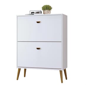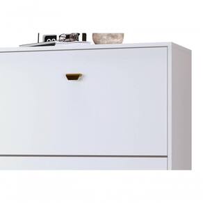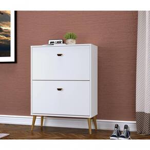 Sapateira Mudy Branco - Moveisaqui A Sapateira Mudy - MoveisAqui com suas 2 gavetas articuladas e divisórias internas foi pensada para garantir a organização do seu ambiente sem ocupar muito espaço. Seus pés palito e seu design clean complementam a decoração mantendo seu dormitório charmoso e moderno.Dimensões do produto montado:Altura: 108 cmLargura: 79,6 cmProfundidade: 32,3 cmObservações:- Produzido MDF e MDP;- Pés em madeira maciça estilo retrô;- Gavetas articuladas;- Comporta aproximadamente 12 pares de calçado;- Pintura ultravioleta com acabamento amadeirado. Marca: Não Informado