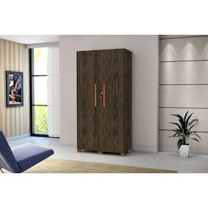 Sapateira Multiuso Dacar Com Nicho Prateleira Pes de Madeira 2 Portas Com Chave Nogal - Marrom