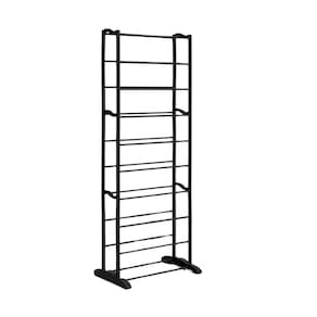 Material: Metal e Plástico (PVC)Dimensões: 50?cm de largura 16?cm de profundidade 139?cm de alturaPeso: 900gCor: PretaCapacidade: Até 10 pares (estimado, conforme tipo de calçado)Montagem: Simples e intuitiva