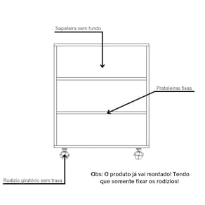 Mantenha seus sapatos organizados e acessíveis, feita de material MDF, esta sapateira oferece durabilidade e estilo para o seu espaço. Equipada com rodízios, facilita a movimentação e a limpeza, garantindo praticidade em qualquer ambiente. Seja no quarto, no closet ou na entrada da casa, é a solução perfeita para manter seus calçados arrumados e ao alcance das mãos.Especificações:Marca: PlanCasa MovelariaMaterial: MDF 15mmCom RodíziosMDF texturizado e impresso com a cor de fábrica, garantindo mais durabilidade para o produtoResistência e durabilidade garantidaMedidas do Produto:Altura: 66 cmLargura: 60 cmProfundidade: 30 cmATENÇÃO!INFORMAÇÕES IMPORTANTES:- Itens de decoração não inclusos na compra.- As peças tem garantia de 30 dias após efetivada a compra.- Verifique atentamente as dimensões do produto antes de efetuar a compra, considerando escadas, elevadores e outras limitações de espaço do ambiente.- Confirmar se todos os itens descritos acima compõem a embalagem no recebimento. Marca: PlanCasa Movelaria