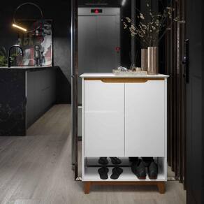 Sapateira Organizadora 2 Portas Hall Flow Branco com Freijó - Rede Móveis