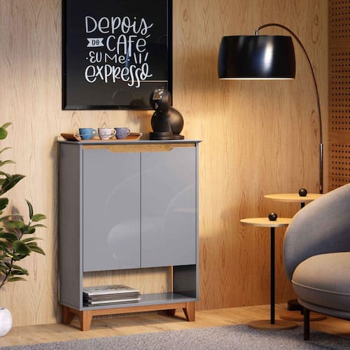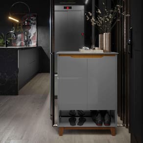 Sapateira Organizadora 2 Portas Hall Flow Cinza com Freijó - Rede Móveis