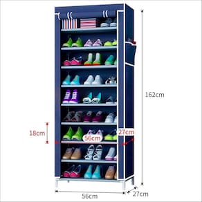 ESPECIFICAÇÕES TÉCNICAS: Material das estruturas: Metal Material: Tecido TNT Material conector: PP Medidas montado: 158cm altura x 30cm largura x 60cm comprimento Medidas na caixa: 7cm altura x 31cm largura x 58cm comprimento Distância entre as prateleiras: 20cm Quantidade de prateleiras: 9 Peso suportado: 27Kg Peso suportado de cada prateleira: 3Kg Marca: METAPARTS Marca: Blend Shoop Ean: 7901439889033