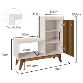 Ela também conta com um assento que possibilita calçar seus sapatos de forma confortável. Abaixo do assento foi inserido um nicho, podendo ser utilizado para acomodar calçados ou itens decorativos.