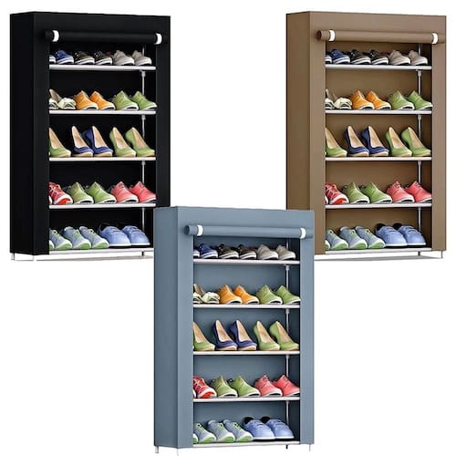 Sapateira ideal para você economizar espaço e organizar seus calçados de forma eficaz, também podendo ser utilizada para livros, brinquedos, pertences pessoais e outros. Possui 5 prateleiras que suportam até 15 pares de sapatos, produzidas em metal revestido de tecido leve para um acabamento perfeito, sendo facilmente transportada para qualquer ambiente e montada com agilidade.