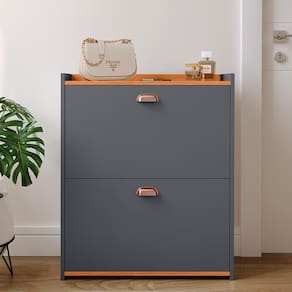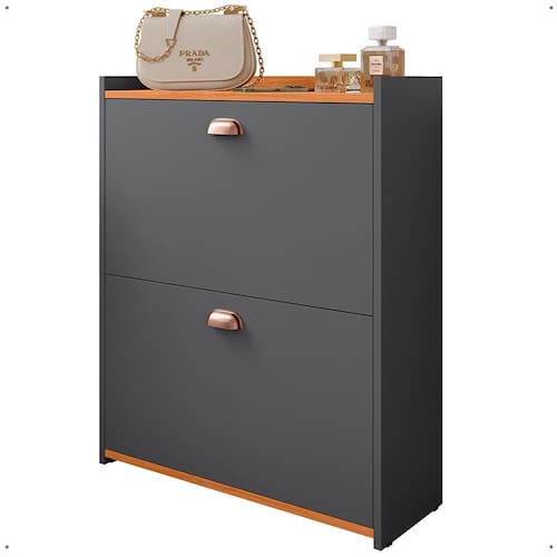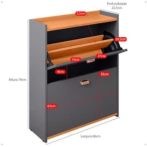 Fabricada em MDP de alta qualidade, oferece resistência e durabilidade. Conta com duas gavetas basculantes com prateleiras, ideais para armazenar até 12 pares de calçados, mantendo tudo organizado e harmonioso.