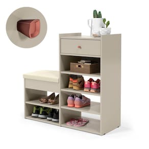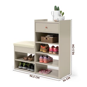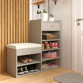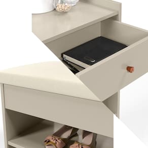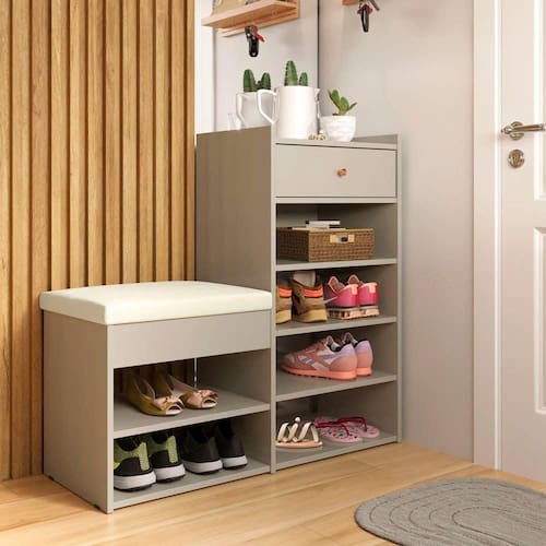 - Banco com assento almofadado para facilitar no momento de colocar ou tirar os sapatos