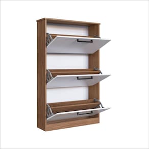 A sapateira Melissa de 3 portas para 18 pares, é um produto projetado para você armazenar e organizar sapatos. Facilitando a organização dos seus sapatos deixando assim sua casa com um ambiente mais moderno e aconchegante. Acabamento da Porta: Laca Ambiente Principal: Quarto codigo_ean: 7900288107251 Complexidade da Montagem: Média: pode ser montado por mais de uma pessoa e/ou necessite de maior conhecimento para montagem Cor: Freijó/Branco Cor do Produto: Freijo/Branco Cor do Puxador: Preto Cor Flex: NÃO Cor Interna: Freijo Escala de Brilho: Semi-Brilho Escala de Brilho da Porta: Brilhante Itens Inclusos: 1 Sapateira , Kit Ferragens, Manual de Montagem Linha ou Coleção: Sapateira Manual de Montagem e Instalação: https://product-hub-prd.madeiramadeira.com.br/983729/documents/d470af0f-9f05-4bbe-af26-6f4f1ee305b22775532400017435098233078.pdf Marca: IRM Material da Porta: MDP Material do Puxador da Porta: Poliestireno Material Principal: MDP Montagem Flex: NÃO Necessita Montagem: Sim Origem do Produto: Importado Peso: 28 kg Possui Espelho: Não Possui Possui Pés: Não Possui Portas: 03 Possui Prateleiras: Não Recomendações de Uso, Manutenção e Limpeza: Para limpeza utilize pano macio levemente umedecido em água seguido de pano seco. Sapatas Niveladoras: Sim Sistema de Montagem: Parafusos, cavilhas e cantoneiras Suporta Até (kg): 12 kg Tipo de Dobradiça/Corrediça da Porta: Plástica Tipo de Porta: Basculante Tipo de Puxador da Porta: Externo