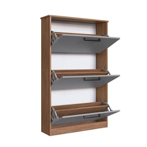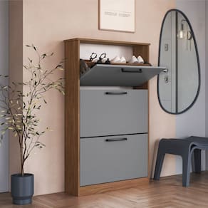 A sapateira Melissa de 3 portas para 18 pares, é um produto projetado para você armazenar e organizar sapatos. Facilitando a organização dos seus sapatos deixando assim sua casa com um ambiente mais moderno e aconchegante. Acabamento da Porta: Pintura UV Ambiente Principal: Quarto codigo_ean: 7900288107268 Complexidade da Montagem: Média: pode ser montado por mais de uma pessoa e/ou necessite de maior conhecimento para montagem Cor: Freijó/Cinza Cor do Produto: Freijo/Cinza Cor do Puxador: Preto Cor Flex: NÃO Cor Interna: Freijo Escala de Brilho: Semi-Brilho Escala de Brilho da Porta: Semi-Brilho Itens Inclusos: 1 Sapateira , Kit Ferragens, Manual de Montagem Linha ou Coleção: Sapateira Manual de Montagem e Instalação: https://product-hub-prd.madeiramadeira.com.br/983738/documents/90f61aa6-32c8-4223-980c-64f94ec9c5982775532400017435098233078.pdf Marca: IRM Material da Porta: MDP Material do Puxador da Porta: Poliestireno Material Principal: MDP Montagem Flex: NÃO Necessita Montagem: Sim Origem do Produto: Importado Peso: 28 kg Possui Espelho: Não Possui Possui Pés: Não Possui Portas: 03 Possui Prateleiras: Não Recomendações de Uso, Manutenção e Limpeza: Para limpeza utilize pano macio levemente umedecido em água seguido de pano seco. Sapatas Niveladoras: Sim Sistema de Montagem: Parafusos, cavilhas e cantoneiras Suporta Até (kg): 12 kg Tipo de Dobradiça/Corrediça da Porta: Plástica Tipo de Porta: Basculante Tipo de Puxador da Porta: Externo