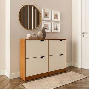 O(a) Sapateira Porto 4 Portas Creme/Freijó - Politorno é produzido em MDP na escala de brilho Semi-Fosco, e possui um grau de dificuldade de montagem: Médio.