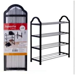 . Produto: sapateira prateleira de sapatos multiuso estante organizador . Possui 4 prateleiras de alta resistência . Capacidade: 8 pares . Material: plástico e metal . Não empiilhável Marca: Tesla Store