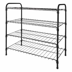 Deixe seus sapatos organizados com a Sapateira 4 Andares. Contando com capacidade para doze pares de sapatos, ela é ideal para guardar calçados e deixá-los arejados, evitando o mofo e mau cheiro que pode ocorrer ao colocá-los em locais fechados. Com estrutura de aço pintado em epóxi a pó na cor preta, é fácil de montar, não necessitando de ferramentas. É resistente, suporta até 12 Kg distribuídos, espaçosa e possui sapatas de proteção, impedindo que a sapateira arranhe o chão. Garanta sua casa arrumada com a Sapateira 4 Andares.