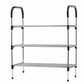 A sapateira possui 3 andares, não ocupa espaço e é fácil de guardar. Pode armazenar bem todos os tipos de sapatos.