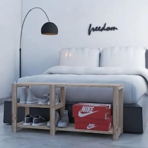 Prateleira de Pinus Suporta até 80 kg por prateleira, ideal para colocar seus tênis, plantas ou outros objetos.