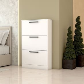 O(a) Sapateira Roma 3 Portas Branco - Loja é produzido em MDP na escala de brilho Brilhante, e possui um grau de dificuldade de montagem: Médio.