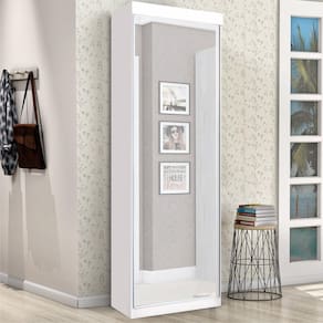 Descrição: A Sapateira Thor é ideal para organizar o ambiente e otimizar o espaço. Conta com 7 Prateleiras ou 5 prateleiras + cabideiro, para organizar os seus pares de sapatos, e oferece altura suficiente entre as prateleiras para acomodar até mesmo os sapatos de salto alto. Possui uma porta espelhada, acabamento em pintura UV, que garante maior resistência e durabilidade ao produto.