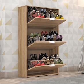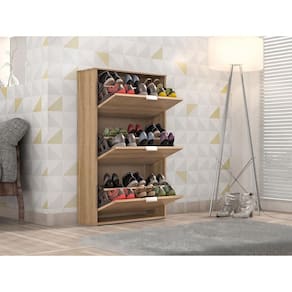 MULTIUSO SAPATEIRA | Com porta articulável, puxadores modernos e um design único faz da Sapateira Safira um móvel sofisticado e próprio para pessoas exigentes com organização. Seus sapatos, sapatilhas, melissas, tênis, chinelos e sandálias ficarão arrumados em um móvel compacto que se adéqua ao estilo da sua casa. Esse item fica perfeito em lugares como Hall de entrada, Quartos, lavanderias, banheiros, garagens entre outros para acabar com a bagunça de calçados no chão. Não indicamos para sapatos maiores que tamanho 41 brasil. Além disso, o produto possui uma fácil montagem.