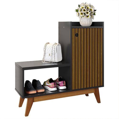 Sapateira Shoes Banquinho Assento Nicho Decorativo Prateleiras Organizadoras 1 Porta 8 Pares Calçados Hall Entrada Quarto - RPM Móveis - Marrom Cacau
